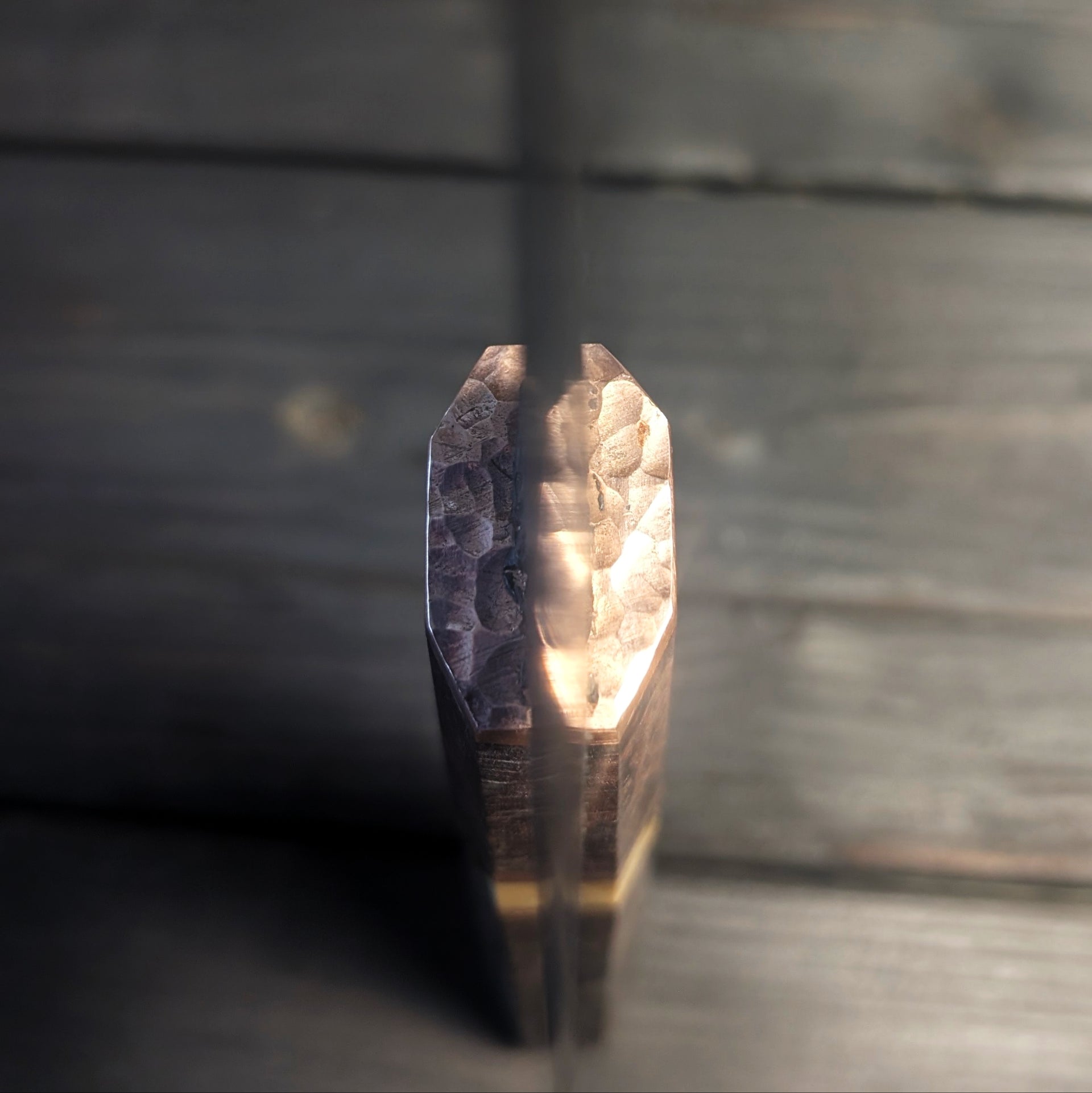 Stabalised wood handle with a mammoth tooth spacer and textured copper